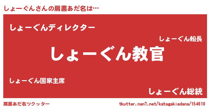 | ヒーロー風カッコイイあだ名 | 『仮面ショダー』『最強戦士ショーグン』 |