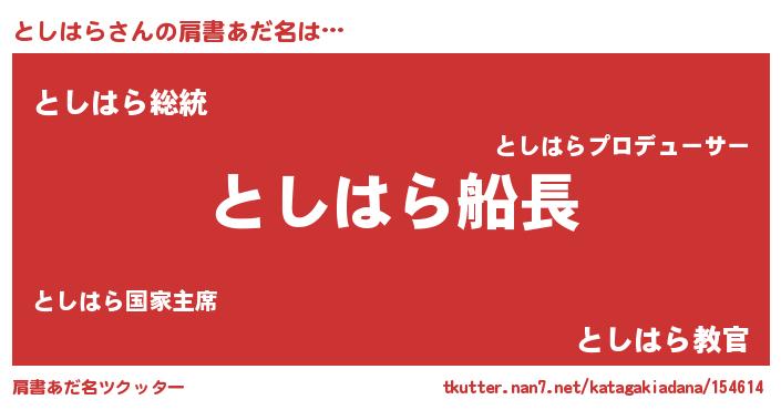 | 意味不明あだ名 | 『自称としはら』『としはらフォーエバー』 |