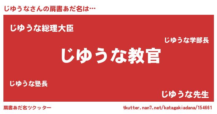 | 男性向けラノベタイトル風あだ名 | 『この素晴らしい世界にじゆうなを!』 |