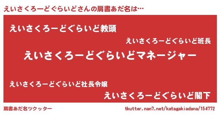 | 欧米人風あだ名 | 『アンジェラ・えいさくろーどぐらいど』 |