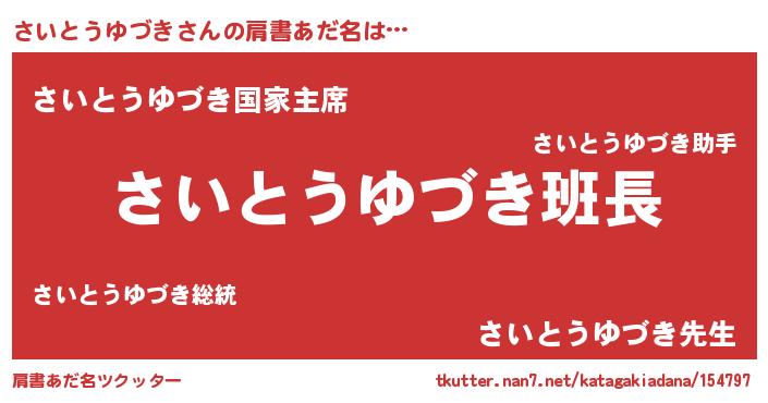 | 意味不明あだ名 | 『とにかく怪しいさいとうゆづき』 |
