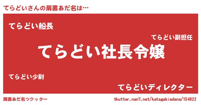 | 意味不明あだ名 | 『ペロリンてらどい』『永久保存てらどい』 |