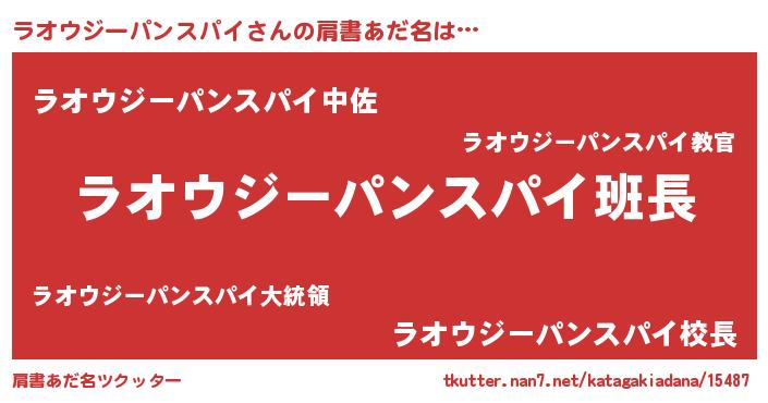 | 意味不明あだ名 | 『とにかく怪しいラオウジーパンスパイ』 |