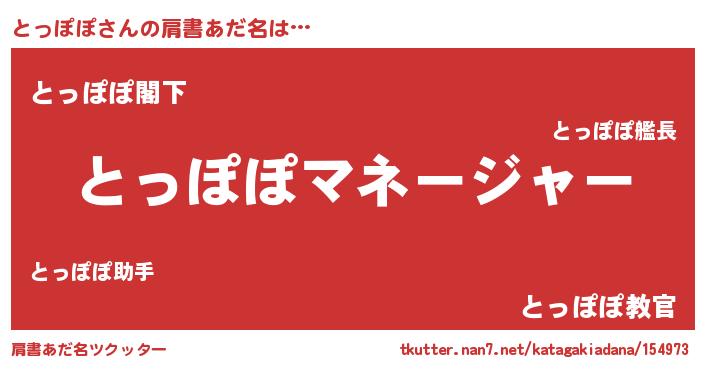 | 男性向けラノベタイトル風あだ名 | 『とっぽぽに滅ぼされるだけの簡単なお仕事です』 |