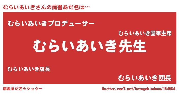 | 意味不明あだ名 | 『永久保存むらいあいき』 |