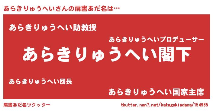 | 意味不明あだ名 | 『自称あらきりゅうへい』 |