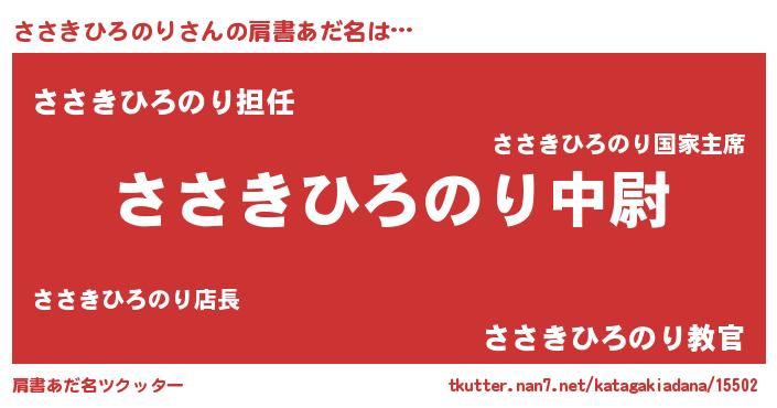 | ヒーロー風カッコイイあだ名 | 『ネオササキヒロノリ』『仮面ササダー』 |