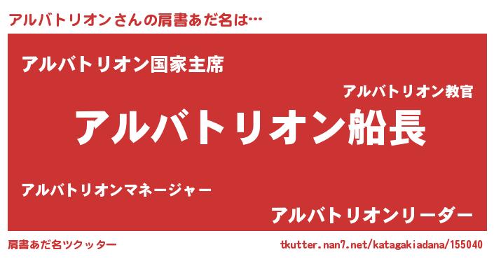 | ヒーロー風カッコイイあだ名 | 『ウルトラアルバトリオンマン』 |