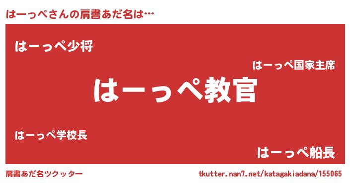 | 男性向けラノベタイトル風あだ名 | 『この素晴らしい世界にはーっぺを!』 |