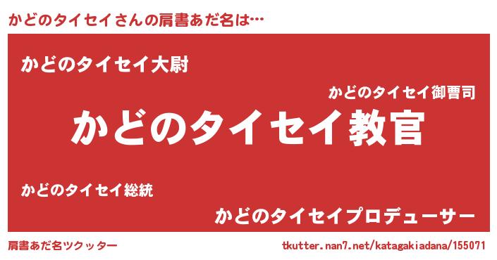 | ヘコむあだ名 | 『かどにゅー』『かどのタイセイ(爆)』 |