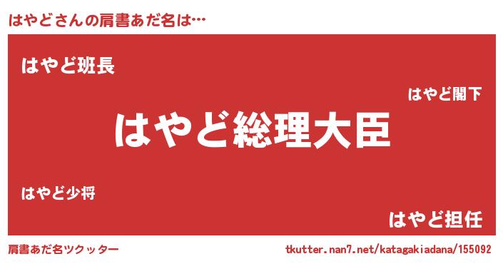| 意味不明あだ名 | 『はやどフォーエバー』『永久保存はやど』 |