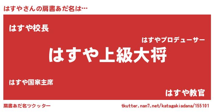 | 意味不明あだ名 | 『なめこ科はすや属』『永久保存はすや』 |