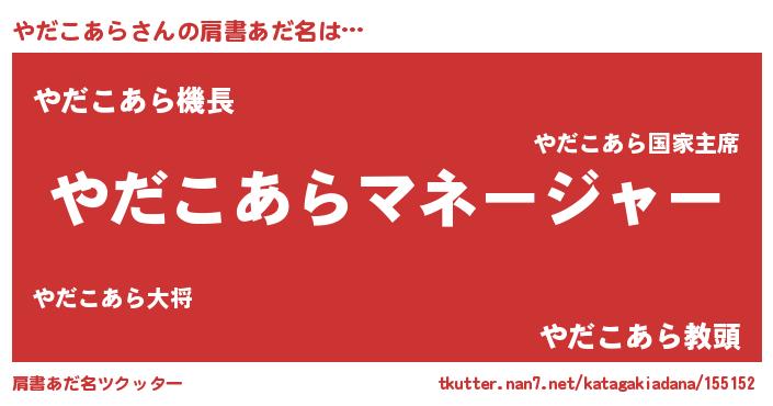 | 意味不明あだ名 | 『永久保存やだこあら』『自称やだこあら』 |