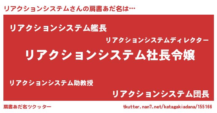 | 男性向けラノベタイトル風あだ名 | 『リアクションシステムアートオンライン』 |