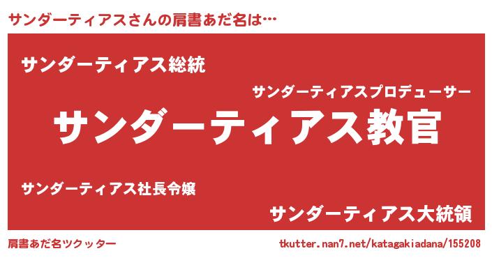 | 胡散臭い通販商品みたいなあだ名 | 『あなたにだけ特別に提供する100年もののヴィンテージワイン…その名も「サンダーティアス」』 |