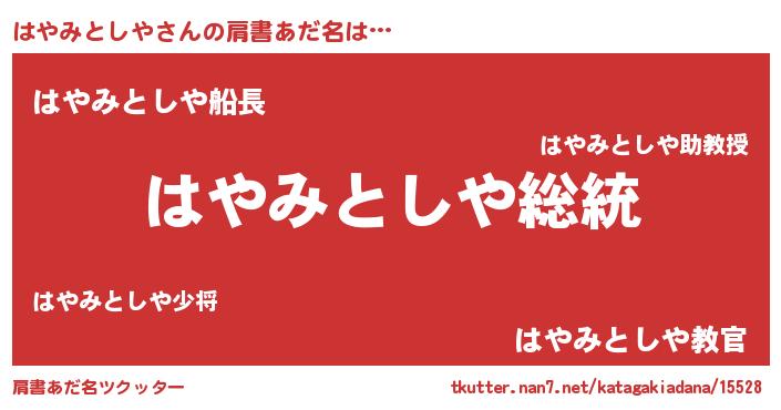 | 意味不明あだ名 | 『自称はやみとしや』 |