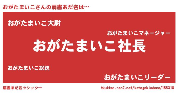| 欧米人風あだ名 | 『マイケルおがたまいこ』 |