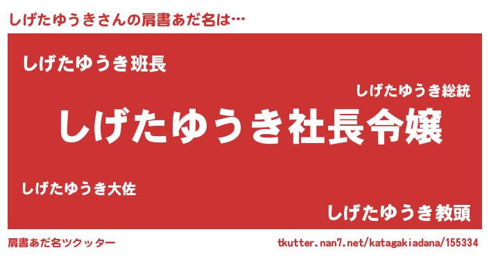 | ポケモン風あだ名 | 『シゲチュウ』『ヒシゲタユウキ』 |