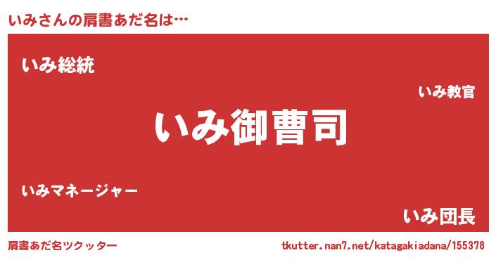 | ヘコむあだ名 | 『いみっふぃ~』『いみぷりん』 |
