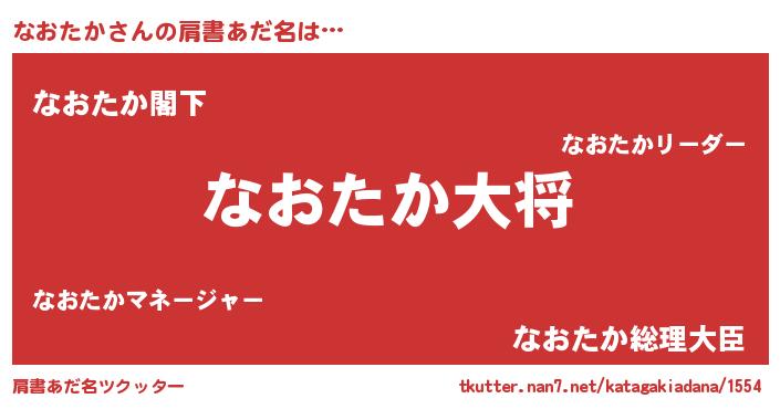 | 男性向けラノベタイトル風あだ名 | 『なおたか~年齢イコール彼女いない歴の魔法使い~』 |