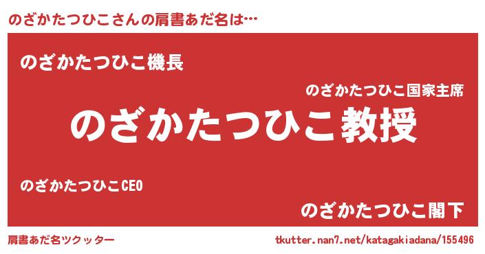 | 男性向けラノベタイトル風あだ名 | 『ノーゲーム・ノーノザカタツヒコ』 |