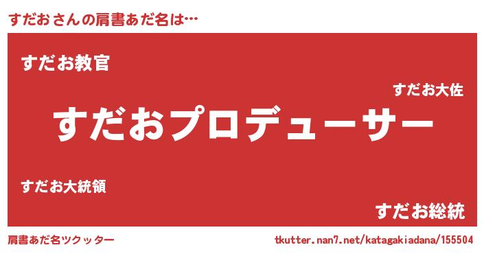 | 男性向けラノベタイトル風あだ名 | 『すだおに滅ぼされるだけの簡単なお仕事です』 |