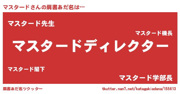 | 男性向けラノベタイトル風あだ名 | 『マスタードに滅ぼされるだけの簡単なお仕事です』 |