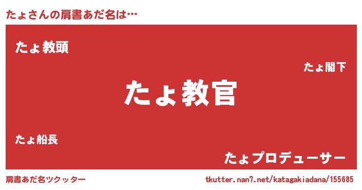 | 男性向けラノベタイトル風あだ名 | 『魔弾の王とたょ』 |