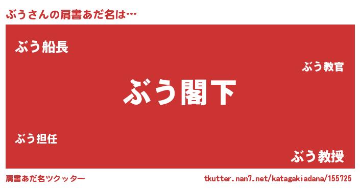 | ヘコむあだ名 | 『ぶう(笑)』『ぶうお』『ぶうにー』 |