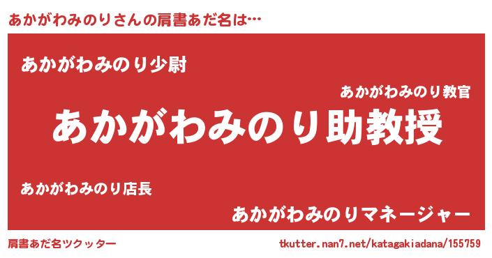 | 女子向けラノベタイトル風あだ名 | 『あかがわみのり恋絵巻』 |