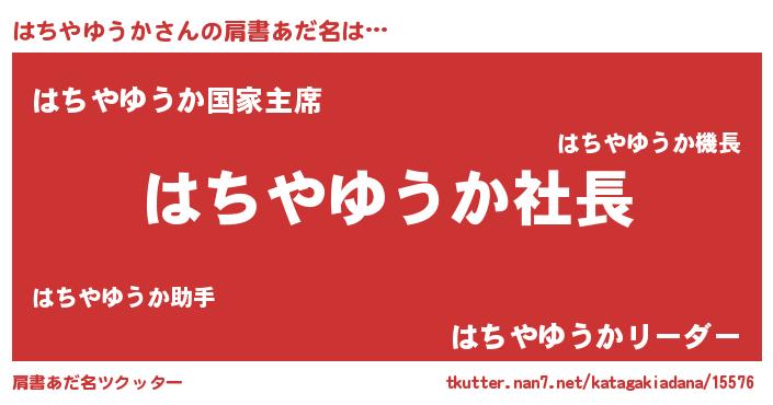 | 恥ずかしいあだ名 | 『プリティーはちやゆうか』『はちっちょ』 |
