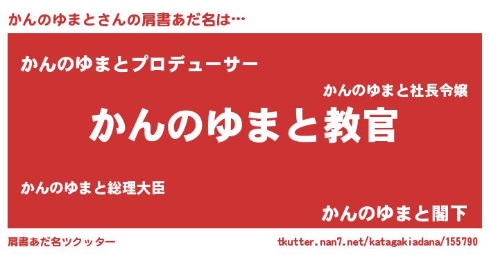 | 男性向けラノベタイトル風あだ名 | 『この素晴らしい世界にかんのゆまとを!』 |