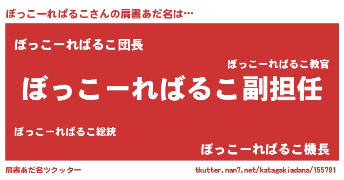 | ヒーロー風カッコイイあだ名 | 『ネオボッコーレバルコ』『幻影騎士ボッ』 |