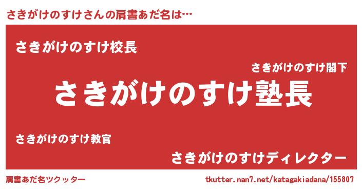 | 意味不明あだ名 | 『とにかく怪しいさきがけのすけ』 |