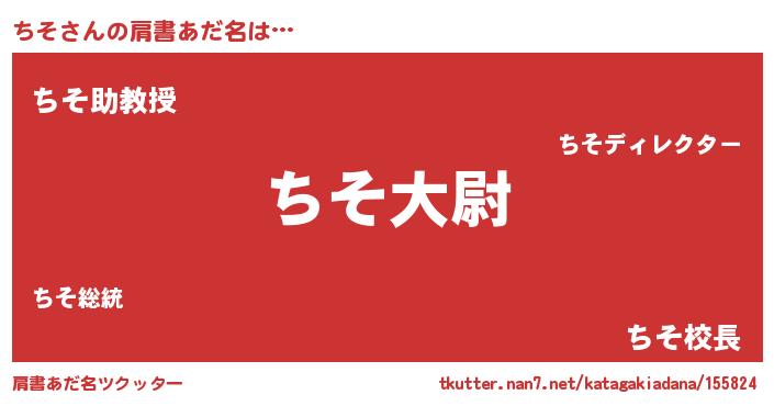 | 男性向けラノベタイトル風あだ名 | 『チソスレイヤー』『はたらくちそさま!』 |