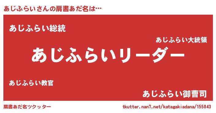 | 女子向けラノベタイトル風あだ名 | 『あじふらい様がみてる』 |