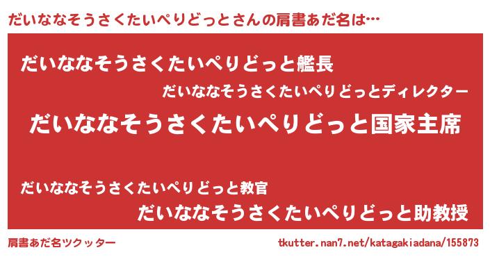 | 意味不明あだ名 | 『だいななそうさくたいぺりどっとフォーエバー』 |