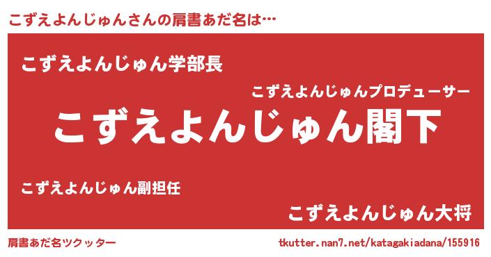 | 欧米人風あだ名 | 『ケンブリッジこずえよんじゅん』 |