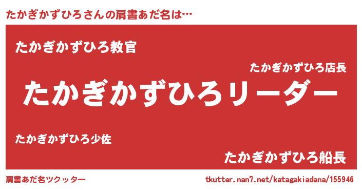 | 男性向けラノベタイトル風あだ名 | 『たかぎかずひろの嫁は女の子じゃないと思った?』 |