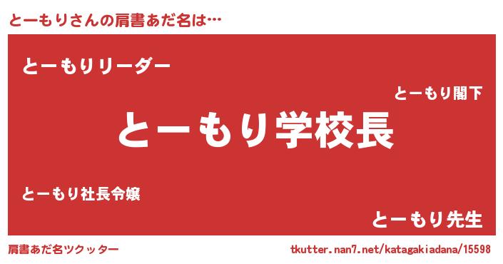 | ヘコむあだ名 | 『とーっぺ』『とーもり(遠い目)』 |