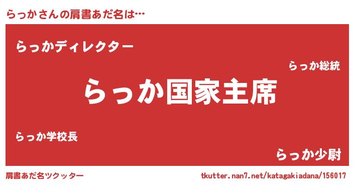| 意味不明あだ名 | 『らっかフォーエバー』『自称らっか』 |