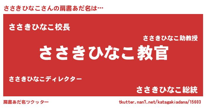 | 女子向けラノベタイトル風あだ名 | 『ささきひなこが死なない童話 林檎のささきひなこの診療簿』 |