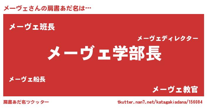 | ヒーロー風カッコイイあだ名 | 『友情の使者メーヴェ』『銀牙騎士メー』 |