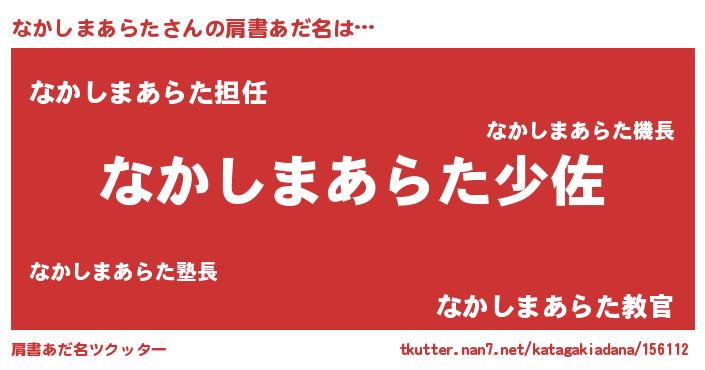 | 男性向けラノベタイトル風あだ名 | 『なかしまあらた~年齢イコール彼女いない歴の魔法使い~』 |