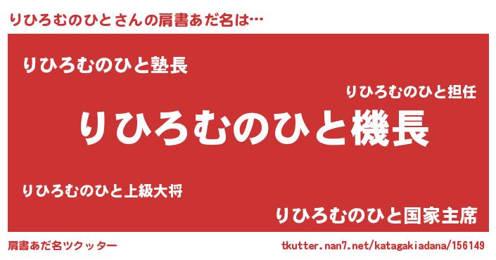 | 意味不明あだ名 | 『とにかく怪しいりひろむのひと』 |