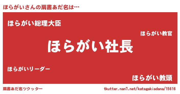 | ヘコむあだ名 | 『ほらにー』『なまこ酢』『ほら太郎』 |