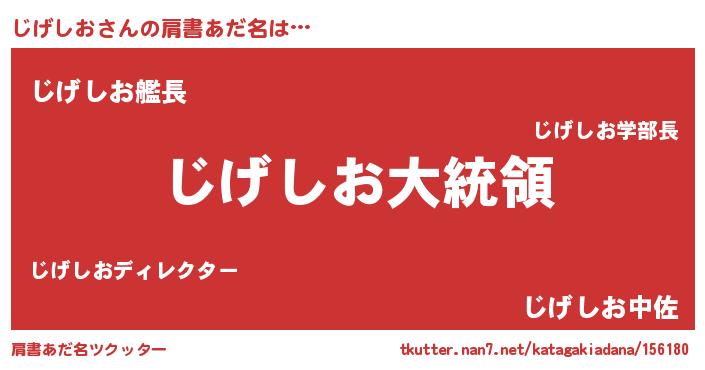 | ヘコむあだ名 | 『酢こんぶ』『じげにゅー』『じげを』 |