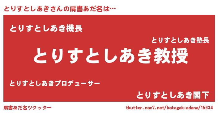 | 伝説のあだ名 | 『救世主となる技術者とりすとしあき』 |