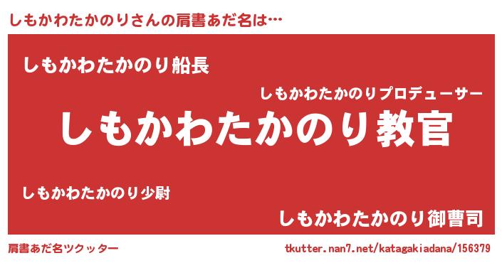 | 女子向けラノベタイトル風あだ名 | 『しもかわたかのりが死なない童話 林檎のしもかわたかのりの診療簿』 |