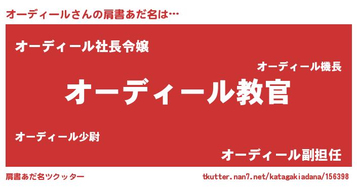 | 男性向けラノベタイトル風あだ名 | 『この素晴らしい世界にオーディールを!』 |